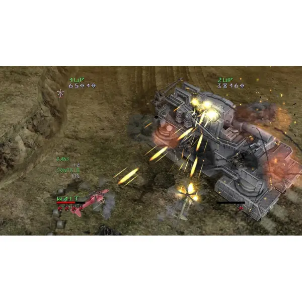 Under Defeat is a vertically scrolling shooter where you control a helicopter capable of moving in eight directions. It's a sleek, streamlined experience with just two buttons—fire and bomb—making it easy to pick up but hard to master. What sets the game apart is the tilt mechanic: as you turn, your shots tilt slightly left or right, allowing for strategic, angled attacks. You also have a small, satellite-like option unit that shoots independently. However, charging it requires you to release the fire button for a while, creating a tactical ebb and flow rarely seen in this all-out shoot 'em up genre.